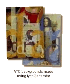 Some time ago we discovered a website designed to produce background images, some of which were suitable for artist trading cards. The typoGenerator allowed you to create random images based on a specified theme. Sometimes it seemed to take a while to create an image, and the results were often unpredictable. Unfortunately this site, created as a student project in 2004, appears to be no longer in operation.